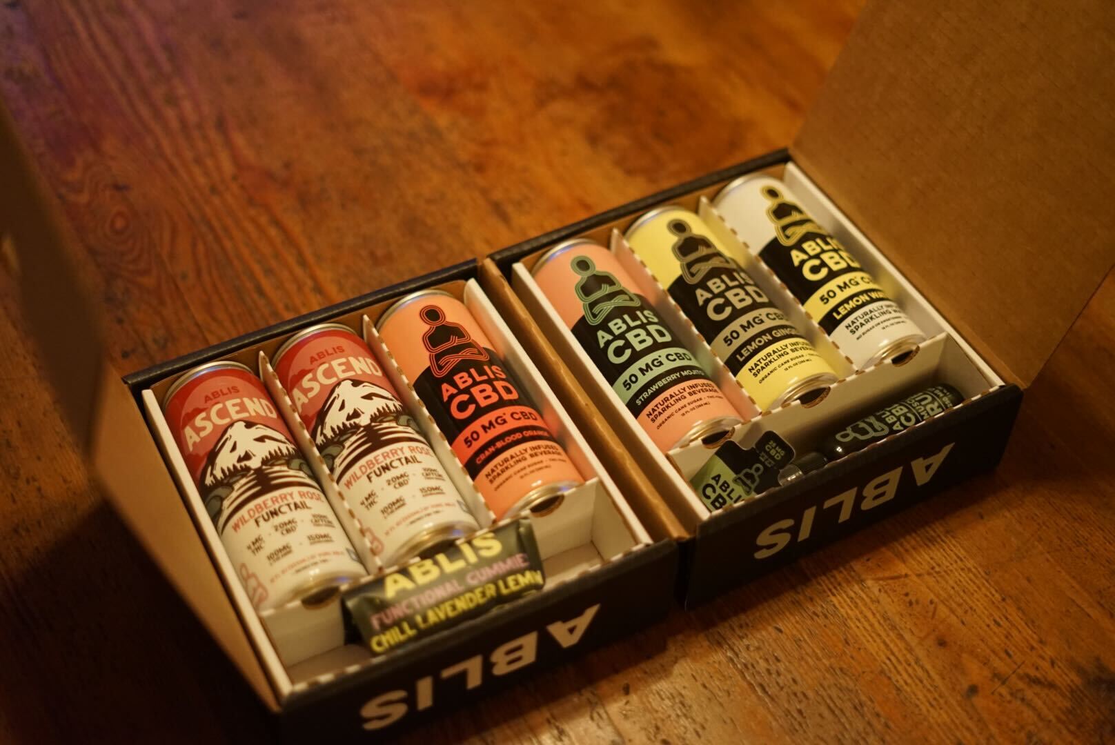 - 1 – 12floz can of each of our CBD Drinks: Cranberry Blood Orange, Strawberry Mojito, Lemon Ginger, and Sparkling Lemon Water.